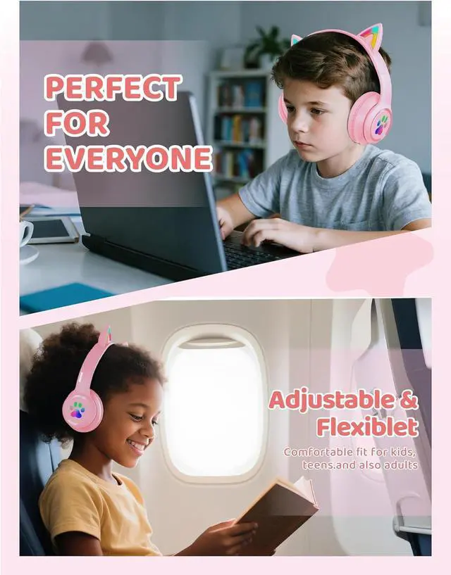 Comfortable and Collapsible Design: The adjustable headband gives the headphones some impressive flexibility, so they can adapt to the shape of your head for a perfect fit. Soft ear cushions and long-wearing comfortable without stress, fit for growing teens even adults. It' s great travel partner, let you ones enjoy the journey without bothering you.