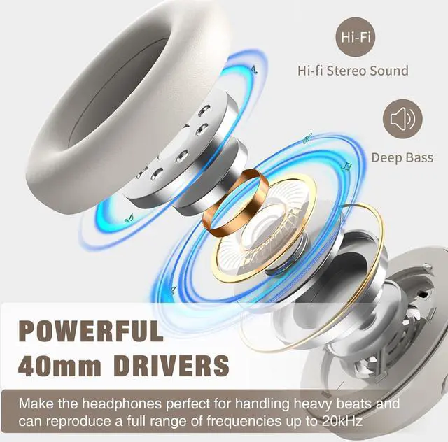 ULTRA-COMFORTABLE DESIGN: The Ear muffs of the over-ear headphones are made of protein leather which mimics the texture of human skin, perfectly fits over your ears without any pressure.