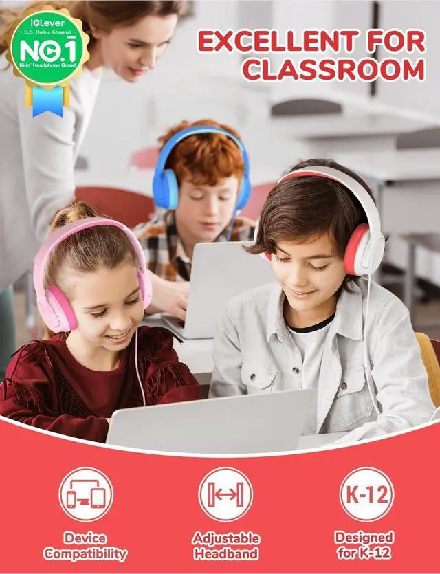 Safe & Kid-friendly Materials: Your little ones deserves better safety! Certified all the materials of these headphones for classroom are safe, sustainable and kid friendly, protecting children' s sensitive and delicate skin and giving you some peace of mind.