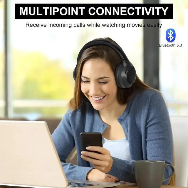 Multipoint Connectivity: Combined with the latest Bluetooth 5.3 chip, NC50 Bluetooth over ear headphones maintain simultaneous connection to at least two Bluetooth devices like a laptop and smartphone. It automatically prioritizes a connection to the device receiving an incoming call over the one streaming videos