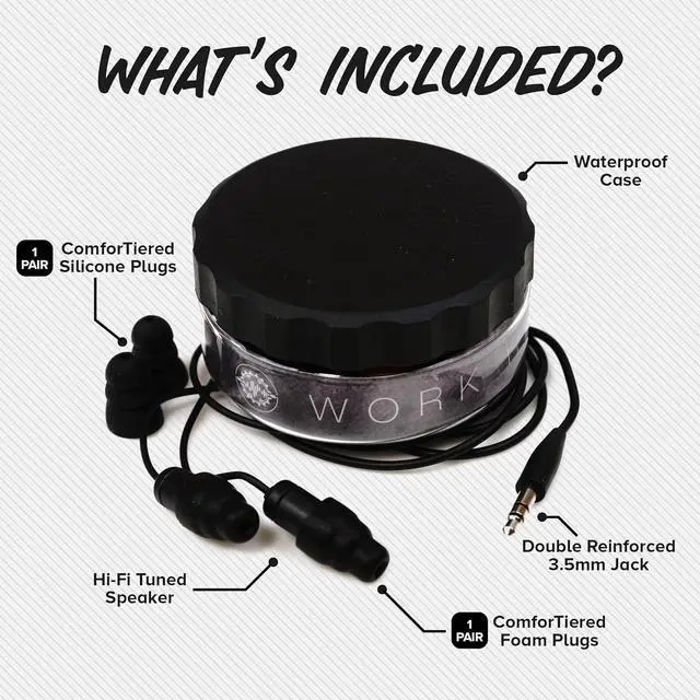 DURABLE WORK EARBUDS FOR LONG SHIFTS: Made for industrial use, these earplug headphones are sweat-resistant and feature a double-reinforced audio jack. Trusted by professionals for reliable performance during construction, landscaping, manufacturing, and more.