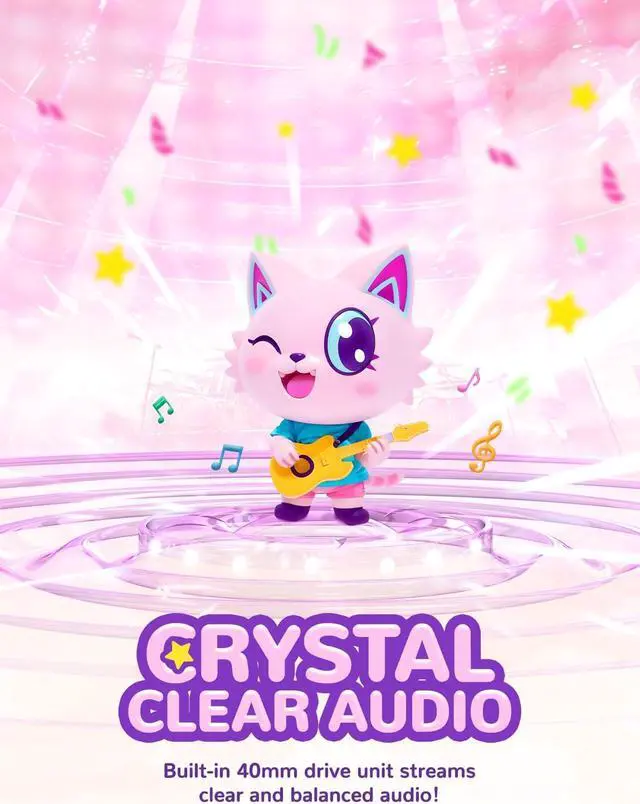 Cat-ear Outlook]: The kids cat ear headphones comes with cat-ear shapes that give off dazzling RGB lights. Better yet, to make these headphones more lovely and cheerful, we' ve printed some cute and exquisite patterns on the ear shells and headband! Now, you' ve got the perfect gift idea for any festive occasions.