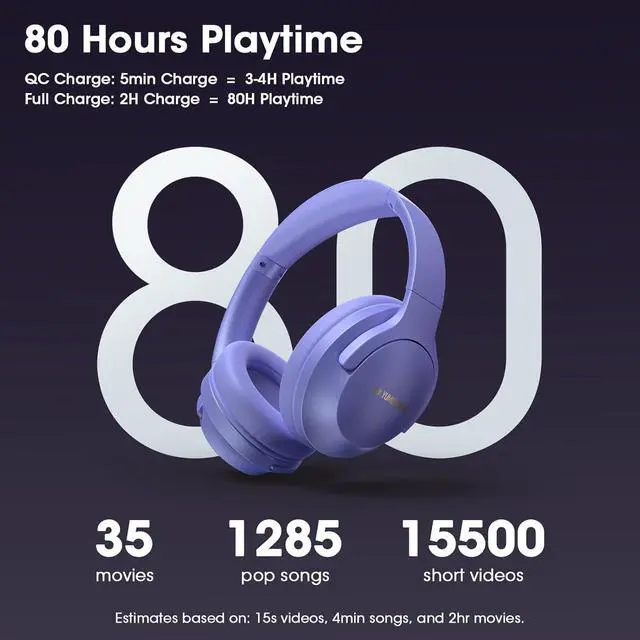 Up to 80 Hours of Playtime: With low power consumption technology, YUMONDEAR headphones wireless deliver up to 80 hours playtime on a single charge. Equivalent to one charge, you can use the over ear headphones for more than 3 days. A single charge gives you enough juice to listen to over 1000 songs or soundtrack multiple long haul flights. Whether you want the convenience of over-ear headphones or the constant listening of a wired connection (including a 3.5 mm audio cable), bluetooth headphones over the ear meet your needs. No need to worry about lack of power on long trips