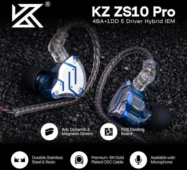 Upgraded 4BA+1DD Hybrid Earphones &Magnetic Dynamic Unit]As an upgraded version of K2 ZS10, the Pro features self-customized balanced armatures which include two 30095 drivers for highs, two 50060 drivers for mids. With this configuration, the sound is transient, dynamic, and bright in all respects. While maintaining the previous performance, the highs of this model is extended beyond 40kHz lt also adopts the second-generation Tesla double magnetic dynamic unit