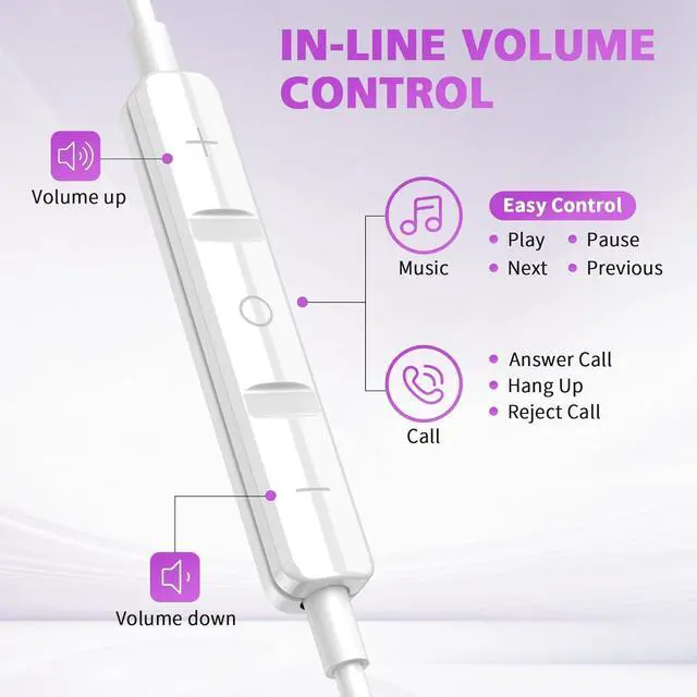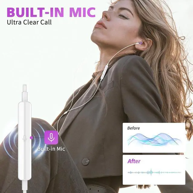 Built-in Mic & Remote Volume Control: USB C earbuds has a built-in microphone, no noise interference during calls. Free hand access to volume control very to pick up/hung up calls. It also supports to adjust volume and skip songs