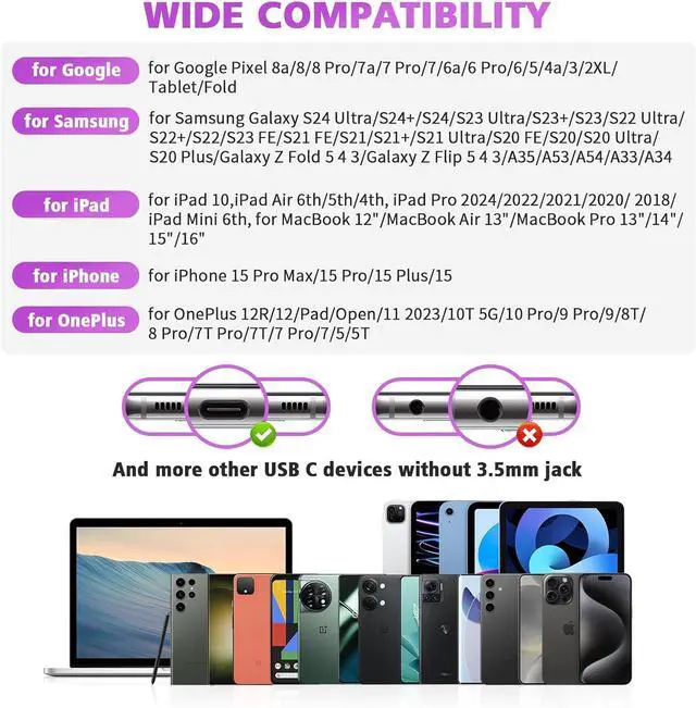 USB C Wired Headphones for iPhone 17 Pro Max/17 Pro/Air/17/16e/16 Pro Max/16 Pro/16 Plus/16/15/15 Plus/15 Pro/15 Pro Max, for Google Pixel 10 Pro/10 Pro Fold/10 Pro XL/10/9a/9/9 Pro/9 Pro XL/9 Pro Fold/8a/8/8 Pro/7/7A/7 Pro/6/6 Pro 5 4 XL, for Samsung Galaxy S25 Ultra/S25+/S25/S24 Ultra/S24+/S24/S24 FE/S23 FE/S23/S23+/S23 Ultra/S22/S22+/S22 Ultra/S21 FE/S21/S21+/S21 Ultra/S20 FE/S20 Ultra/S20+/S20/A35/A53/A54/A33/A34, Z Flip 7 FE/7/6/5/4/3 Fold 7/6/5/4/3, Tab S10 Ultra/S10+/Tab S9/S9+/S9 Ultra/S8/S7/S6/S5e, for OnePlus 13R/13/12R/12/Open/Pad/10T/10 Pro/9/Nord/8T/8/7T/7/6T, for Macbook Pro 13" 14" 16", for iPad 11/10, for iPad Pro/Mini/Air, USBC devices without 3.5 mm jack