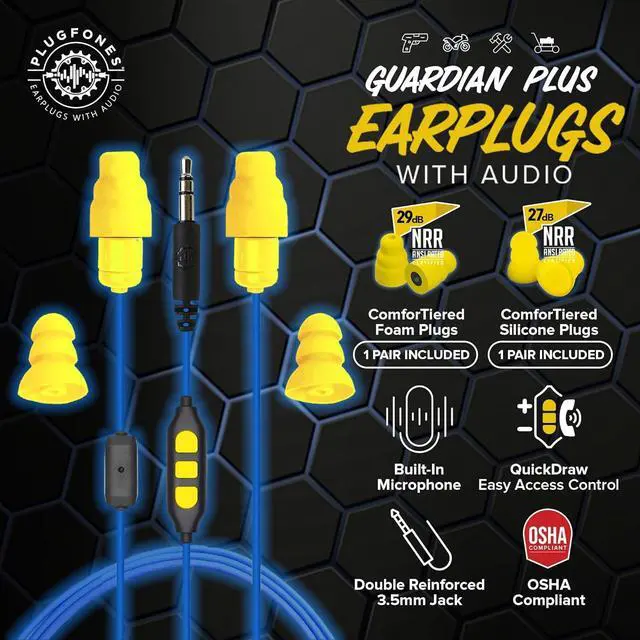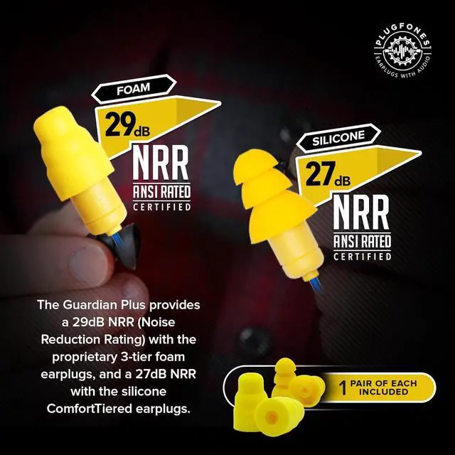 WORK HEADPHONES: Get premium sound & protection in your earbuds for work. Guardian has ANSI-certified Noise Reduction Ratings (NRR) of 27 & 29 dB and is OSHA compliant when used to OSHA regulations.