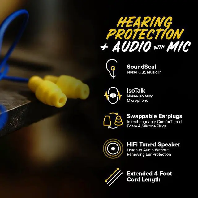 NOISE REDUCING EARBUDS & MIC: Weve combined comfortable, safety-rated earplugs and our own custom tuned speakers to give you the ultimate hearing protection and rich, immersive, crystal clear sound.