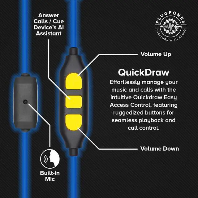 EASY ACCESS CONTROL: Manage your calls, play, pause, or progress through music, control volume, and answer, reject, or end calls with Quickdraw easy access control buttons at your fingertips.