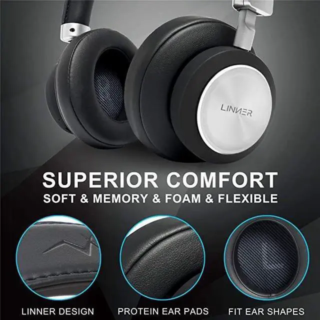 LINNER Noise Cancelling Headphones Large Ears, Wireless Noise Cancelling Headphones Bluetooth, Best Noise Cancelling Headphones with Microphone NC90