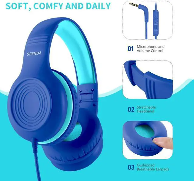 Seenda Kid's Foldable Wired Over-Ear Headphones, Blue, HKC306