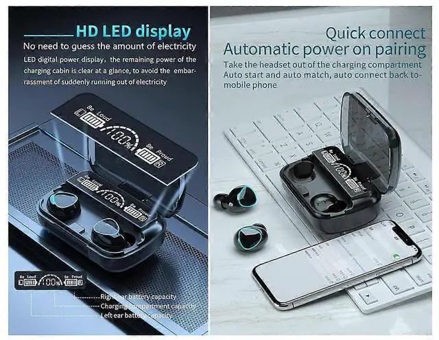 LED Power Display: Clear battery indicators for both earbuds and charging case