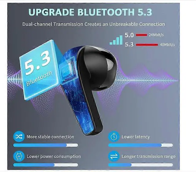 Experience premium audio with these upgraded wireless earbuds featuring Bluetooth 5.3 for stable, low-latency connectivity and auto-pairing convenience. Ideal for workouts, commuting, and travel, they deliver immersive sound and crystal-clear calls.