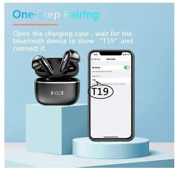 Upgrade your audio experience with the T19 Bluetooth 5.3 earbuds, featuring a sleek LED display and long-lasting performance.