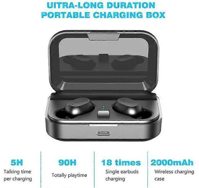 * **90-Hour Total Playback**: Enjoy up to 5 hours from the earbuds, extended to 90 hours with the massive 2000mAh portable charging case that provides 18 additional recharges.