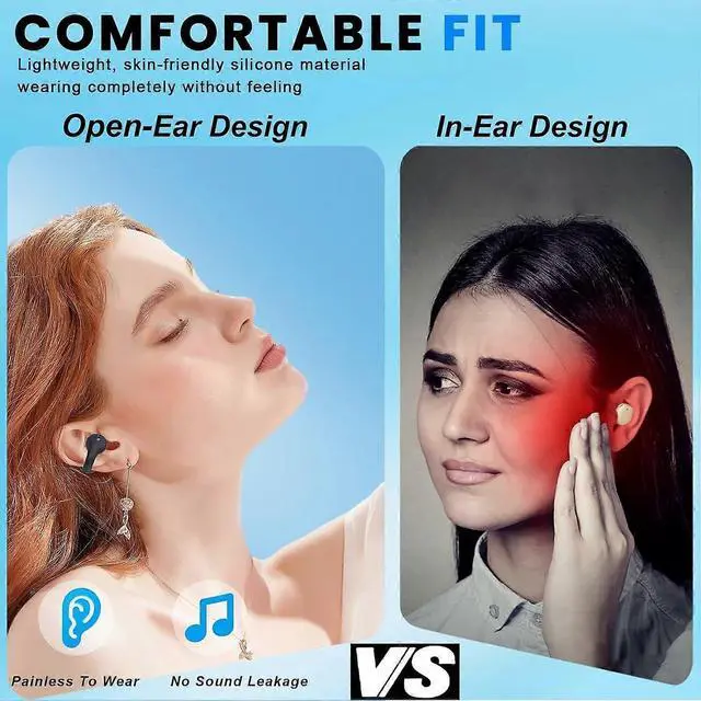 Open-Ear Design: Avoids ear canal discomfort and maintains hygiene with secure, lightweight (12g) fit