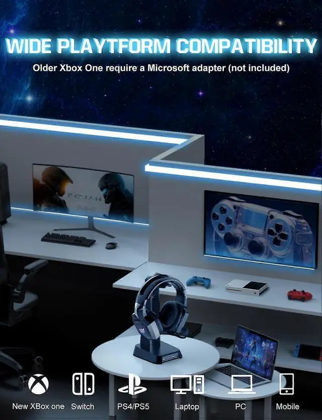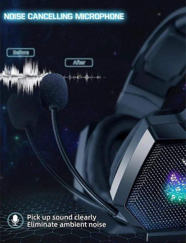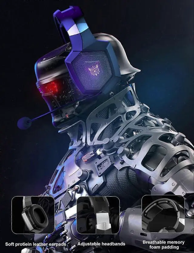 Comfort-Fit Design: Adjustable headband and soft, oversized earmuffs for extended gaming sessions.