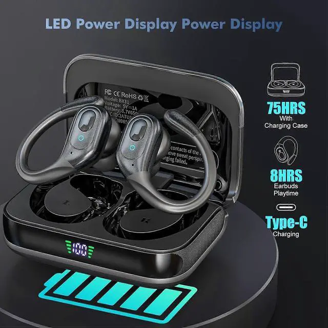 - **75-Hour Total Playtime**: Wireless charging case with LED display provides 8 full charges, offering 10 hours per earbud and over 75 hours total music time.