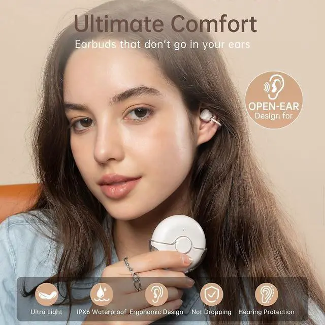 **Open-Ear Comfort**: Sweat-proof, oil-resistant design prevents ear canal clogging and fatigue, ideal for long wear.