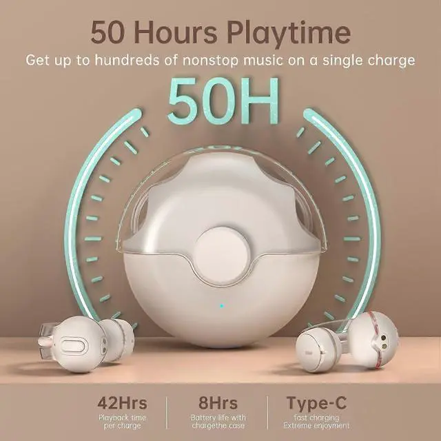**50-Hour Playtime**: LED display shows battery status; 18 hours from headphones plus 42 hours from charging case for extended use.