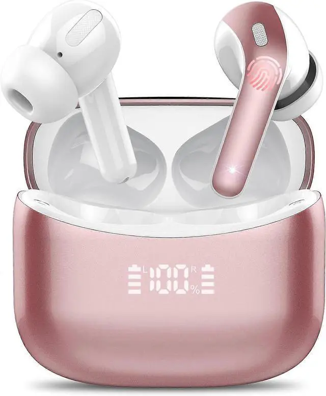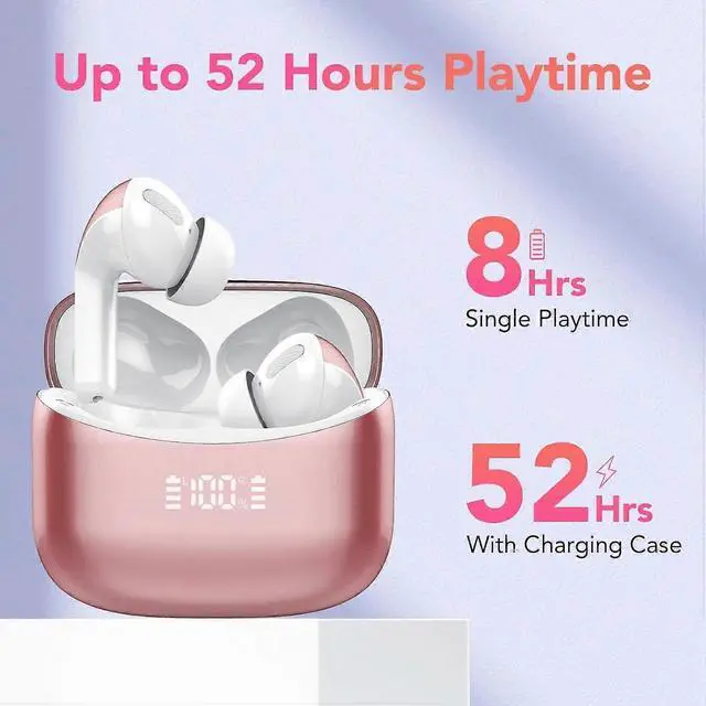Experience superior wireless audio with these Bluetooth 5.3 earbuds in rose gold, featuring an extended 52-hour total battery life and a convenient LED charging display. Ideal for daily commutes, workouts, and travel, these earbuds deliver reliable performance and style.