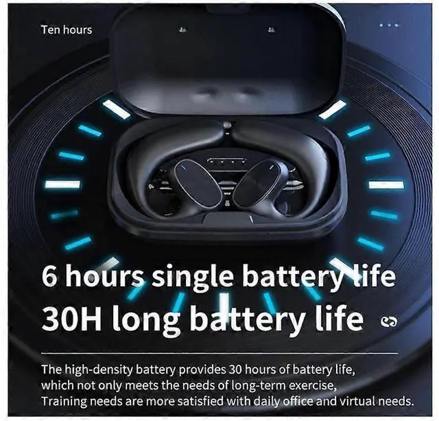 Experience ultimate comfort and crystal-clear audio with our open-ear wireless earbuds, designed for active lifestyles. Open-ear design eliminates in-ear discomfort while providing secure fit during workouts Advanced noise cancelling technology delivers HD sound quality for immersive listening Built-in microphone ensures clear calls and voice commands 400mAh charging case offers up to 300 hours standby time for extended use Intuitive touch controls for easy music playback, volume adjustment, and call management Automatic pairing when removed from case for quick connection to devices Ideal for running, hiking, gym sessions, and daily commutes