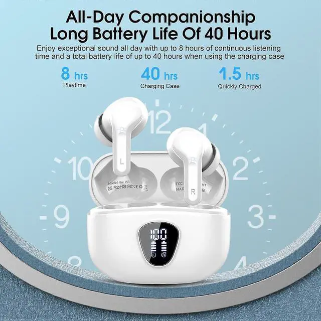**40-Hour Total Playback with LED Display**: Get 8 hours from the earbuds and 40 hours with the case, featuring clear LED power indicators and fast USB-C charging.
