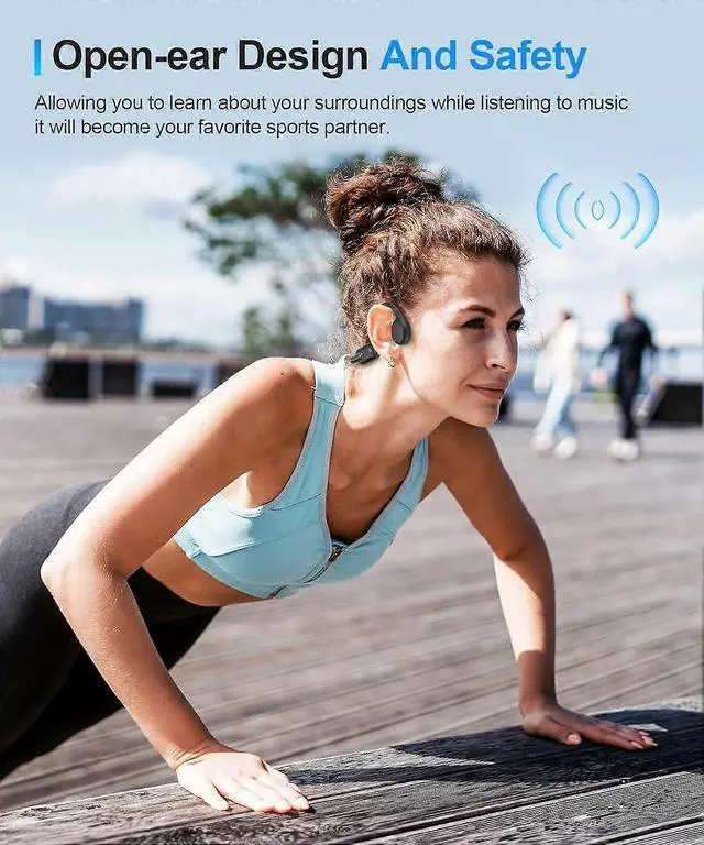 Open-ear design using true bone conduction technology, keeping you aware of surroundings while minimizing hearing damage during jogging, biking, or workouts.