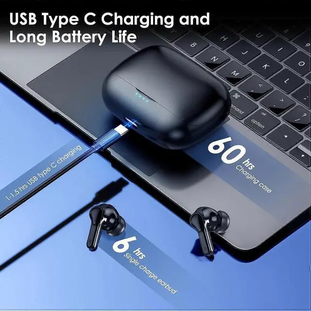 - **60H Total Playtime**: Charging case provides up to 60 hours of music playback, with 6 hours per earbud and quick USB-C charging.