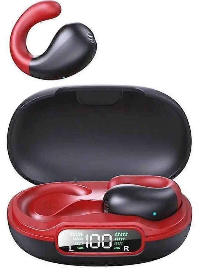 Red Wireless Open Ear Earbuds, Bluetooth 5.3 Bone Conduction Headphones for Sports