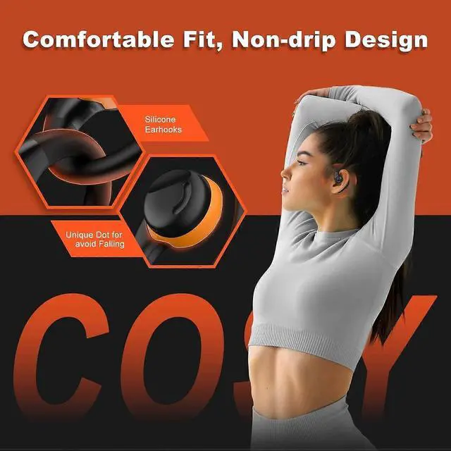 * **Secure & Sweatproof Fit: ** Lightweight, flexible earhooks ensure a stable, comfortable fit during intense workouts, running, and sports activities.
