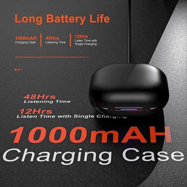 * **Massive 60-Hour Battery: ** A 1000mAh charging case provides up to 12 hours of continuous playtime per charge, with quick 1.5 -hour full recharge capability.
