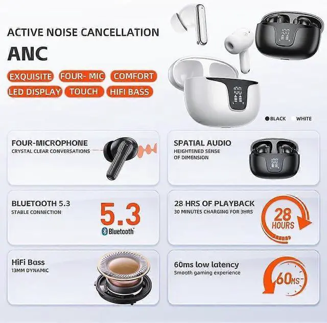 **Active Noise Cancellation**: Advanced technology blocks ambient noise for immersive, high-fidelity audio.