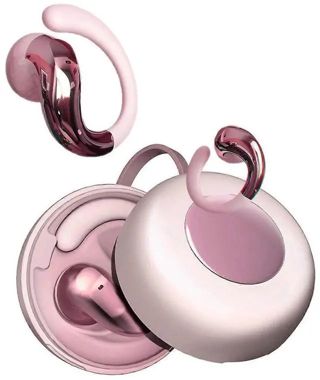 • Discover our stylish pink Bluetooth ear clip earbuds, combining fashion with functionality for active lifestyles. These wireless earbuds feature a secure ear hook design that stays comfortably in place during any activity.