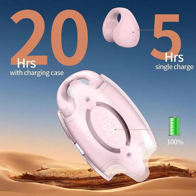 Experience ultimate audio freedom with our pink open-ear clip headphones, designed specifically for active women and girls. Featuring Bluetooth 5.3 for stable connectivity and high-fidelity stereo sound with powerful bass and 3D surround for immersive listening.