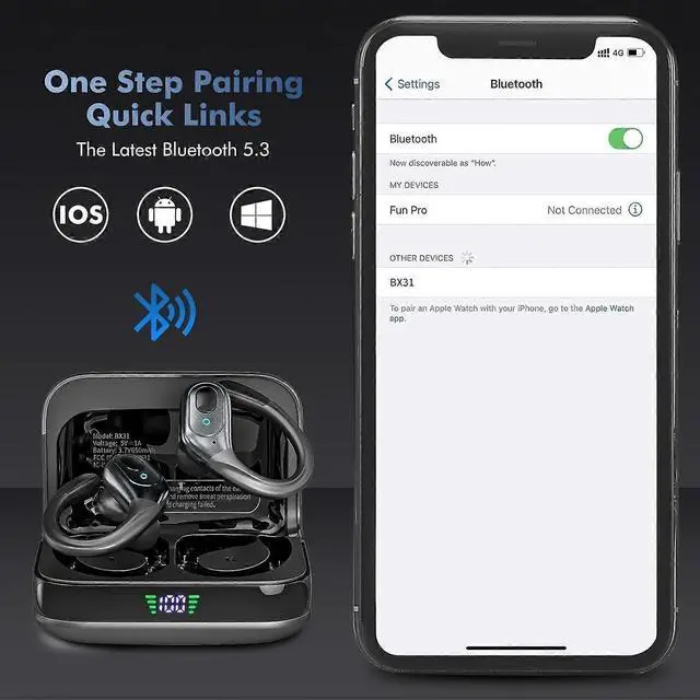**75-Hour Total Playback**: Enjoy 8 hours per charge and 75 total hours with the LED display charging case for precise battery monitoring