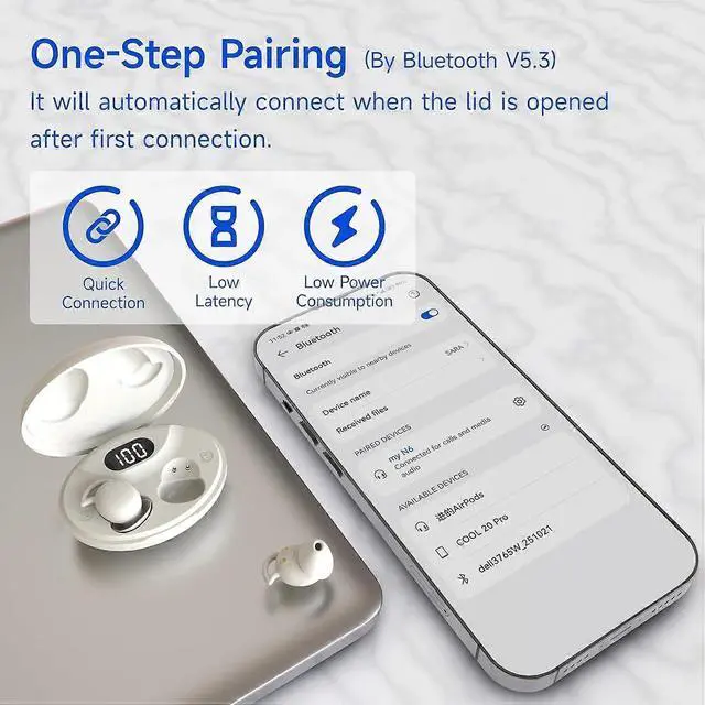Experience uninterrupted, peaceful sleep with our invisible Bluetooth sleep earphones, designed specifically for side sleepers. These earphones block disruptive noises like snoring or traffic, allowing you to drift off to soothing music or ambient sounds.