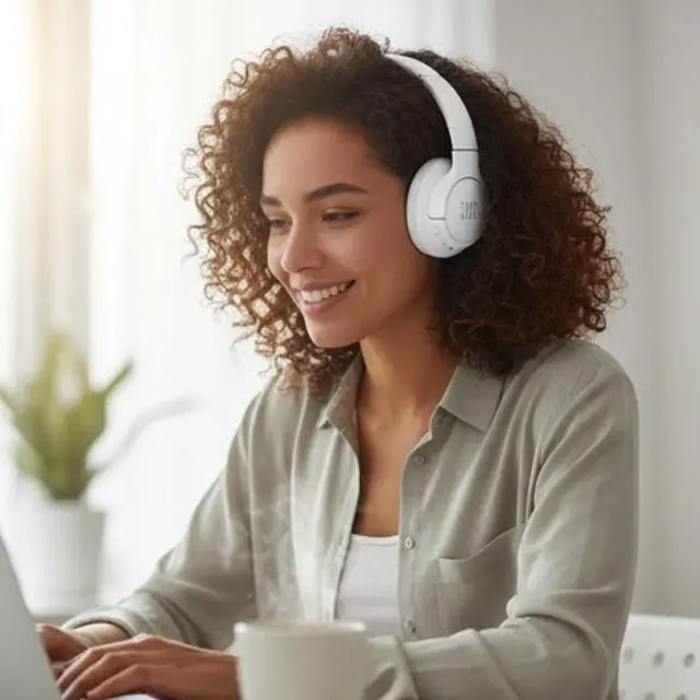 Experience immersive sound with JBL Tune 720BT wireless over-ear headphones in sleek white. Featuring powerful JBL Pure Bass audio and the latest Bluetooth 5.3 technology, these headphones deliver up to 76 hours of playback with a quick 5-minute charge providing an extra 3 hours. Customize your sound using the free JBL Headphones App and enjoy convenient voice prompts and on-ear button controls for calls, music, and volume. Lightweight and comfortable for long listening sessions, these foldable headphones are perfect for travel, work, or home use. Seamlessly switch between devices without missing a call, and carry them easily in your backpack.