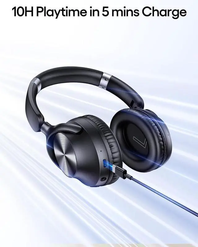 Fast Charging: With advanced Active Noise Cancellation tech, which reduces up to 95% of ambient noise. Whether it' s the noise from a subway, the engine sound of a car or airplane, the H08 headphones minimize distractions, allowing you to fully enjoy your musicThe fast charging tech lets you enjoy 10 hours of music with just a 5-minute charge. Less time spent charging means more time for music. With a full charge, you can use the headphones for a whole week without recharging