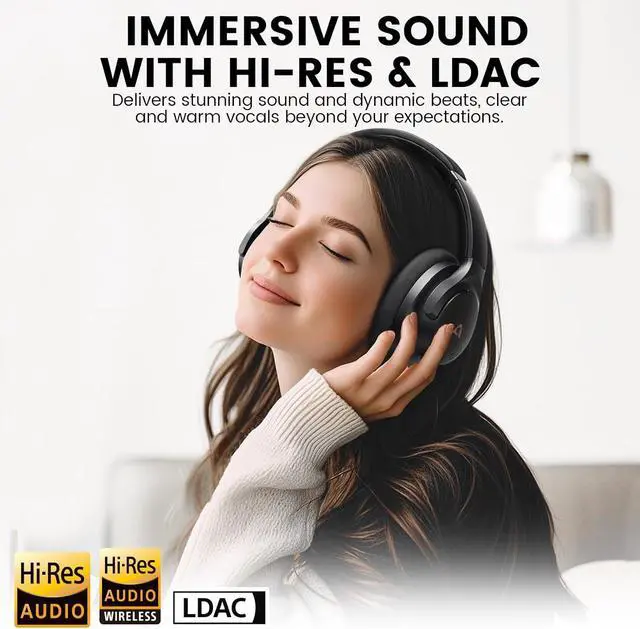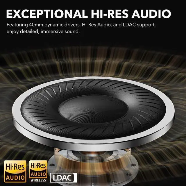 CERTIFIED HI-RES AUDIO & LDAC: 1Mii Y8 wireless headphones deliver the studio-grade sound with Hi-Res audio and LDAC technology. The 40mm drivers deliver rich, detailed sound with a balanced performance, from deep, resonant lows to crystal-clear highs, letting you hear every note exactly as it was meant to be heard