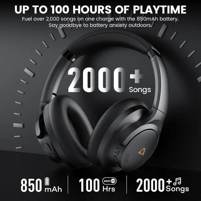 100 HOURS CONTINUOUS PLAYBACK: With an extraordinary 100-hour battery life (55 hours with ANC activated), 1Mii Y8 noise canceling headphones wireless provide days of uninterrupted listening. A 10-minute quick charge offers an additional 5 hours of playback. Stay powered during flights and trips, free from battery worries