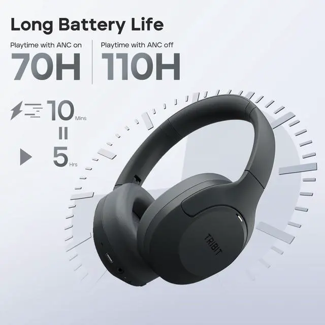 110 Hours Playtime and Fast Charging: Enjoy up to 110 hours of playback on a single charge, or up to 70 hours with ANC on. With fast charging, just 10 minutes provides up to 5 hours of playtime (at 50% volume).