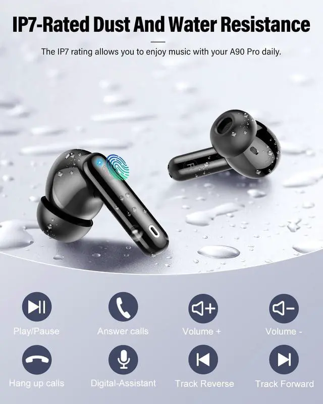 More Outstanding ENC Noise Reduction: The wireless headphones adopts dual 14.2 mm low-distortion composite dynamic drivers with high resolution decoder built-in and AAC&SBC audio coding technology. In addition, the ENC calling noise cancellation technology brings a clearer sound to your calls, giving you a whole better feeling, everything from the A90 noise cancelling earbuds.