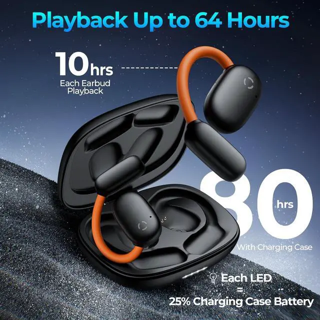 *Over-Ear Comfort for Pressure-Free All-Day Wear: The over-ear wireless earbuds feature lightweight, ergonomic earhooks that rest securely outside your ear canaleliminating discomfort and ear fatigue even during extended use. Perfect for daily commutes, workouts, or long workdays where comfort cant be compromised. Ideal for anyone who values pain-free listening with wireless headphones that feel barely there