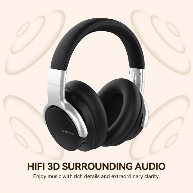 Advanced Noise Cancellation: With advanced noise cancelling technology, AUSDOM active noise cancelling headphones cut down up to 92% of low and mid-frequency ambient noise, freeing you from the distractions of airplanes, subways, cars, and crowds. Enjoy pure music or focus on your work even in the noisiest environments like coffee shops and streets.