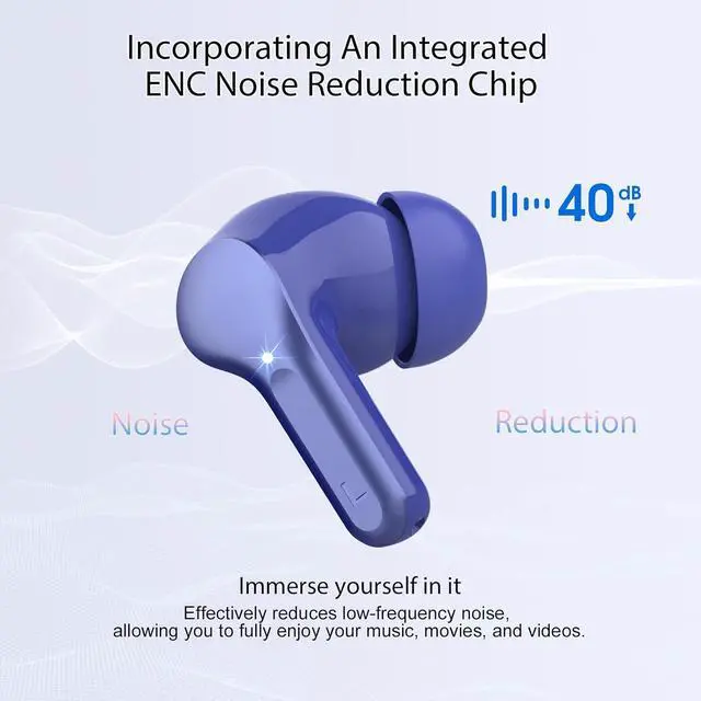 Clear call experience: This noise cancelling earbuds uses advanced ENC call noise reduction technology to effectively filter out more than 80% of external noise, ensuring that the other party' s voice remains clear during busy commuting, work or exercise, providing you with a high-quality call experience. The Headphones equipped with 4 high-performance microphones, it can accurately capture your voice, so that the other party can always hear clearly throughout the call even in a noisy environment.