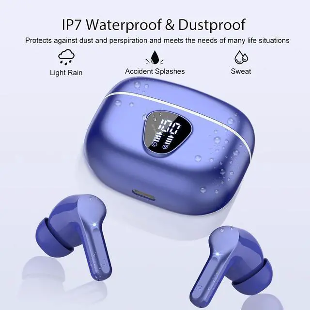 48H long-lasting battery life & dual LED digital display: Up to 8 hours of music playback on a single charge ( 1.5 h only) with the charging box, this in ear headphones offers up to 48H of battery life, ensuring you can use it for a long time without frequent charging. The LED display clearly shows the battery level of the earbuds wireless bluetooth and the charging box, ensuring you always know the remaining power and enjoy an uninterrupted music experience during a long journey or a busy workday.