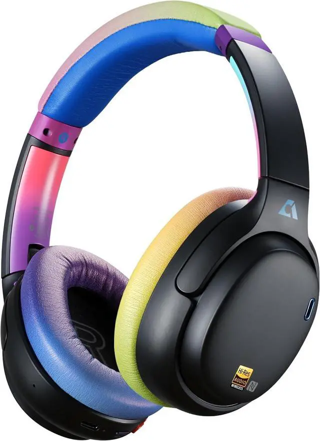 1Mii AI E700 Wireless Bluetooth Over Ear Headphones with Active Noise Cancelling, Hi-Res Audio LDAC/aptX Low Latency for Airplane Travel, Comfort, AI Translation Voice Chat Custom EQ via App Colorful