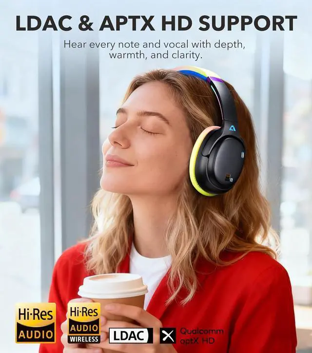 WIRELESS HI-RES AUDIO WITH LDAC & APTX HDThanks to the high-grade Qualcomm chip, these Bluetooth headphones over the ear unlock breathtaking Hi-Res sound. Feel every beat and every layerLDAC and aptX HD stream music in lossless quality for an immersive, true-to-life listening experience