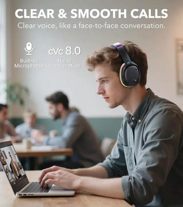 CLEAR CALLS, JUST LIKE FACE TO FACEWith powerful cVc 8.0 noise cancellation, these over-ear noise cancelling headphones block background noise so your voice comes through crisp and natural. Perfect for meetings, voice chats, or video calls, they make every conversation feel effortless and in-person